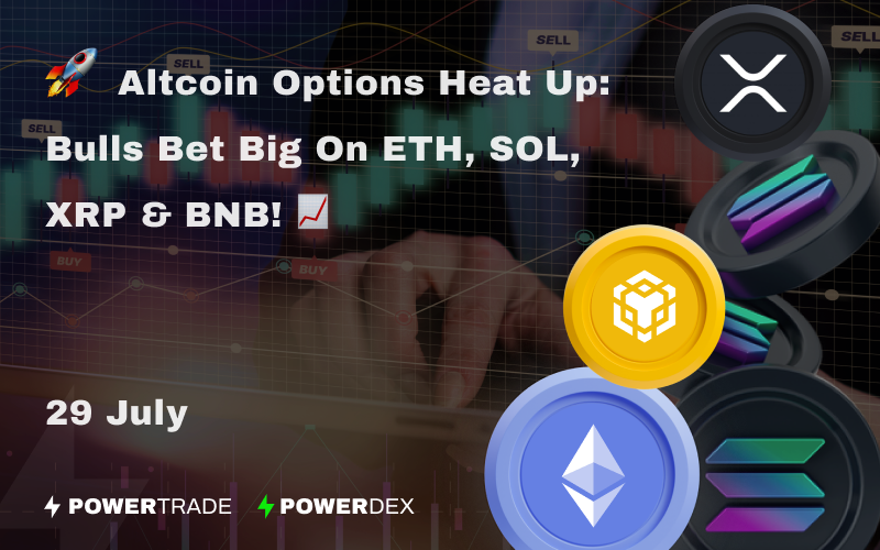 - Binance Coin (#BNB) Burst on Record Highs: BNB had a flurry of options action after Binance Coin rocketed to an all-time high near $855. When a top coin enters price discovery (no historical ceiling), it often brings a wave of speculative trading — and that’s exactly what happened. BNB options volume spiked with calls dominating (similar to ETH and XRP, BNB’s call open interest vastly outweighs puts). Traders on PowerTrade are heavily long BNB via call options, and many are eyeing even higher targets — $900, even $1,000 — if the rally continues. This enthusiasm was palpable on July 29 as multiple large call positions printed at strikes around $800-$850 for near-term expiries. Some of this could be momentum traders chasing the trend, and some could be BNB whales hedging (e.g. selling calls or buying calls as a hedge against their spot holdings during the volatile ATH push). Either way, the activity was unusual in its size. Momentum is clearly on BNB’s side, and the options market reflected that with a flurry of bullish positioning. It’s worth noting that BNB’s surge is underpinned by both general market optimism and Binance-specific factors (like its ongoing token burn program and ecosystem growth). As long as that confidence remains, traders seem happy to keep pressing the upside via calls.